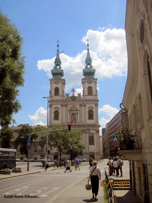 Aynı otobüs ve bir aktarma ile Margit Adasının öbür tarafındaki köprü olan Arpad'a ulaştık ve buradan metroya binerek (M3) önce Nyugati tren istasyonu ve yeniden 6 no'lu tramvayla saat 13.00'te Margit Köprüsüne ulaştık. Şimdiki hedefimiz Kalenin kuzeyinde kalan bölge olan Vizivaros'tu. Su Şehri anlamına gelen Vizivaros'un ana caddesi Fo, semti boylu boyunca geçiyor. Buranın en önemli gezi noktalarından birisi Azize Anna Kilisesi. Rehber kitaplarda Budapeşte'nin en güzel barok örneklerinden birisi olarak geçen ikiz kuleli kilise 18. yüzyıla ait. Kapısındaki heykellerde oldukça güzel.
