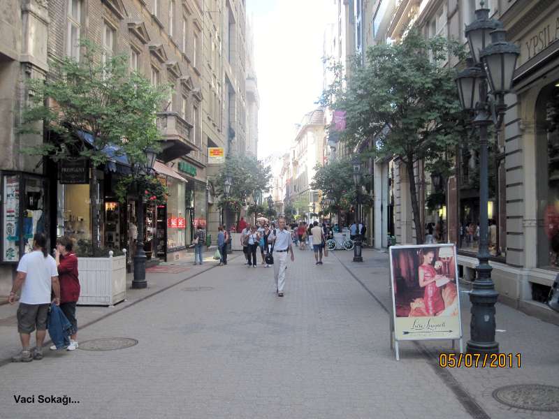 Pazarın hemen karşısındaki köşede bulunan Burger King'i görünce acıktığımız aklımıza geldi ve menülerimizi alarak dışarıda tesadüfen bulduğumuz masaya çöktük. Gelen geçenin seyri, yorgunluğun biraz atılması derken saat 16.00'yı buldu. Buradan meşhur Vaci Sokağına doğru yürümeye başladık. Onu bunu bilmem ama en kalabalık ve hareketli dedikleri yer bile bizimkilerin eline su dökemez. Vaci'nin sonundaki Vörösmarty Meydanını da turladıktan sonra Deak Meydanında bulunan Turizm Danışma bürosuna gittik. Buraya gelme sebebimizi kısaca açıklamam lazım: