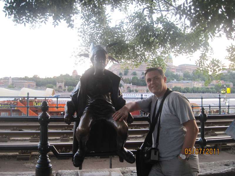 Biletimizi cebimize koyduk ve akşam yemek yemeyi planladığm yeri Cem'e göstermeye yukarı çıktık. Tüm gezi boyunca döner, Burger King falanla geçirmiştik ama özel ve yöresel yemekleri denemeden gitmeye de niyetimiz yoktu. Duna Corso Restoran, Kale ve Matyas Kilisesini tam karşıdan gören, önü yürüyüş yolu ve devamında Tuna nehri olan müthiş manzaralı bir restoran. Cem hemen onayı verdi ve restoranın tam karşısında yer alan demire oturmuş Pinokyo heykelinde fotoğraf çektirdik. Okuduğuma göre Prens Charles Budapeşte gezisi sırasında bu heykeli görmüş ve çok beğenmiş. Heykeltraşla tanışmak istemiş. Ve O'nu İngiltere'ye sergi için davet etmiş. İnanılmaz şirin bir heykel...