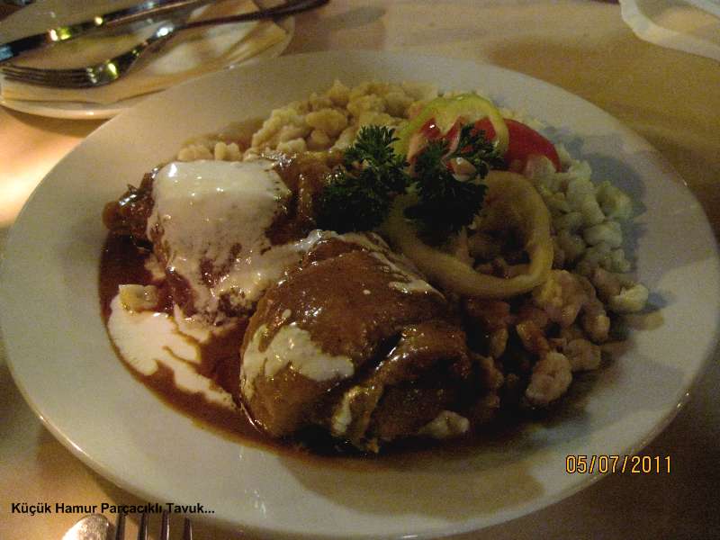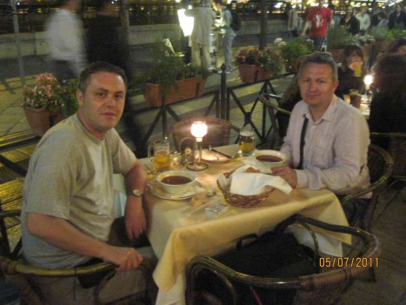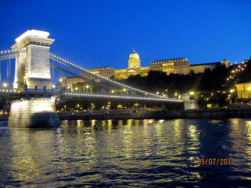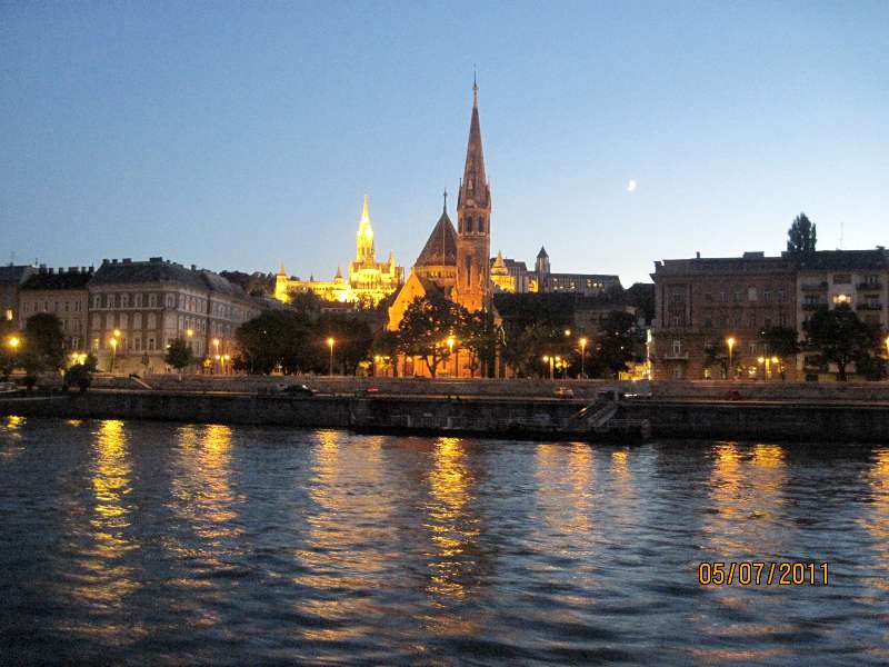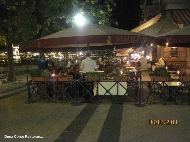 Keyifli tekne gezimizi tamamlayıp Duna Corso Restorana oturduğumuzda saat tam 22.00 olmuştu. Tam kaleyi, Matyas kilisesini cepheden gören bir masadaydık. Hemen biraz ilerimizde üç kişilik müzisyen grubu Macar şarkıları eşliğinde müşterilere hoşça vakit geçirtmeye çalışıyordu. İkimiz birer meşhur gulaş çorbası sipariş ettik. Hem de büyük olanından...Ve yanında birer köpüklü bira...Çorbalar geldiğinde ikimiz de birbirimize baktık: Tabak yerine kocaman iki tas vardı garsonun elindeki tepside. Bunları yedikten sonra üstüne bir şeyler yiyemeyeceğimizi konuştuk. Ama ekmeği elimizin tersiyle itip domuz etiyle hazırlananlar dışındaki bir başka macar klasiği olan biber soslu servis edilen, küçük hamur parçacıklı tavuk (Paprika chicken with dumpling) söyledik. Her ikisi de çok lezzetliydi. Ama gecenin assolisti elbette Tuna ve muhteşem Buda manzarasıydı...