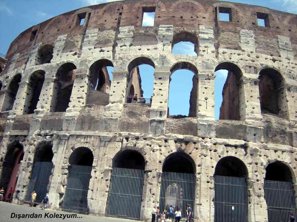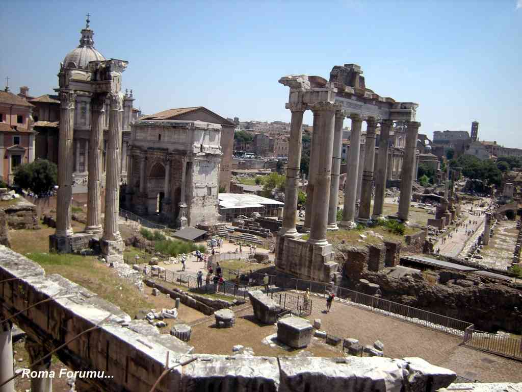Sonunda Kolezyum'un içine girebildik. Dışarıdan göründüğüne oranla daha küçük bir yapı ancak yine de muhteşem. Buranın yapımına İS.72'de başlanmış, yani kabaca 1900 yıldır ayakta kalan bir yapının içerisindeyiz. İçeriye girince gözlerinizi kapatın ve biran için aç bırakılan ayılar, aslanlar veya diğer hayvanlarla dövüşen kölelere doğru tezahürat yapan kalabalığın sesini duymaya çalışın. Biz de böyle yaptık ve Kolezyum'dan çıkamadık bir türlü. Buradan Foruma, yani eski Roma merkezinin olduğu alana doğru gidiyoruz. Biraz soluklanıp Forum'u dolaşmaya başlıyoruz. Azıcık hayal gücü forumda da çok işinize yarayacaktır. Kendimizi Kolezyum ve Forum'un heyecanına kaptırıp Roma sıcağında akşama kadar dolaştık ve bugünkü yorgunluğumuz dünkü yol yorgunluğumuzu aratmayacak durumda. Artık bir sonraki güne hazırlanmalıyız.