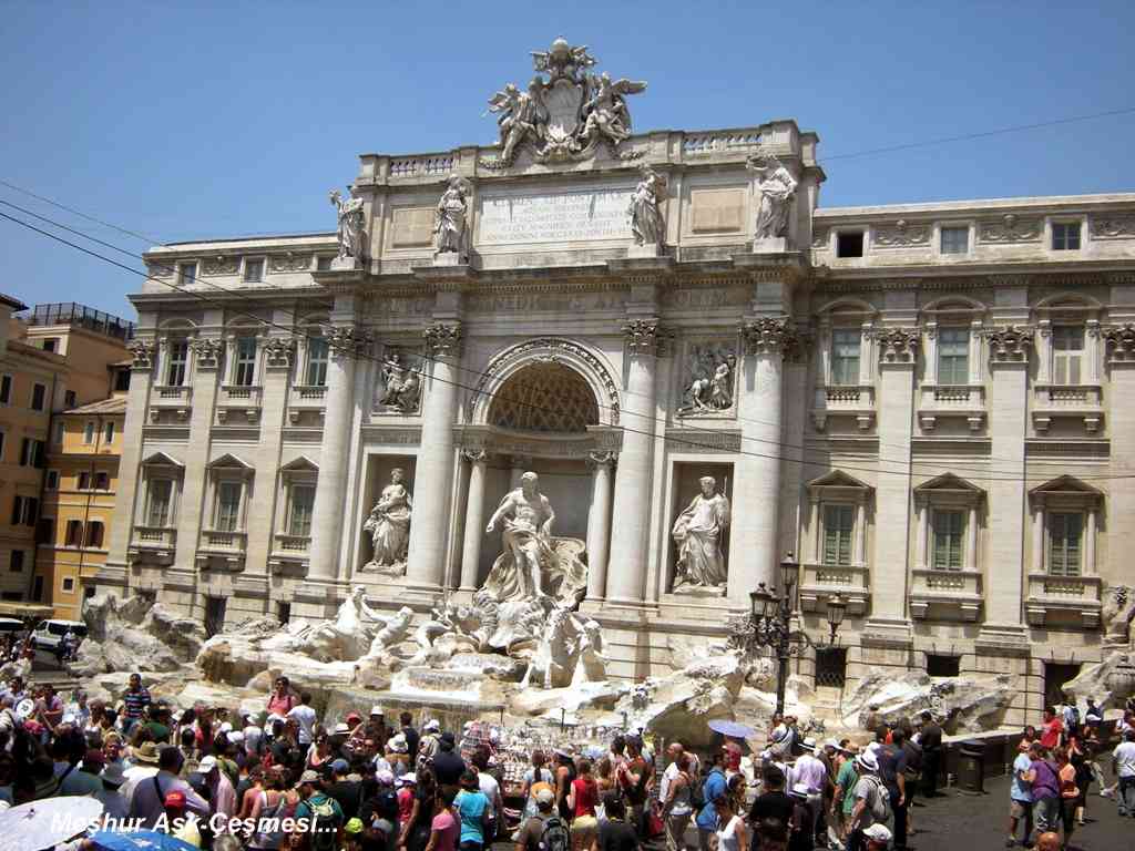 Yola devam, sırada bizdeki bilinen ismiyle Aşk Çeşmesi var. Aşk Çeşmesi'nin önü ana baba günü, çeşmeye arkamızı dönüp para atacağız ki, Roma'ya tekrar gelebilelim ama ne mümkün. Neyse ki birazdan kendimize bir yer açmayı başarıyoruz. İnsanın o sıcakta havuza giresi geliyor ama bir görevli sürekli dolaşıp ayaklarını havuzdaki suya sokanları uyarıyor. Çeşmenin karşısına, Neptün heykeline doğru oturmalı ama önce kendimize şu meşhur Roma dondurmalarından almalıyız. İtalya'da, sadece Roma'da değil her yerde, satılan dondurmalar çok güzel. Ama bizim dondurmalar sanki daha koyu kıvamlı, Roma dondurması ise çok çabuk akıp elinize yüzünüze bulaşabiliyor. Bu dondurma için, ama özellikle fındıklısı için bir miktar kirlenmeye değer. Diğer taraftan 2 €'luk olan en küçük boydan alıp akmasına izin vermeden çabucak bitirmek daha akıllıca olacaktır.