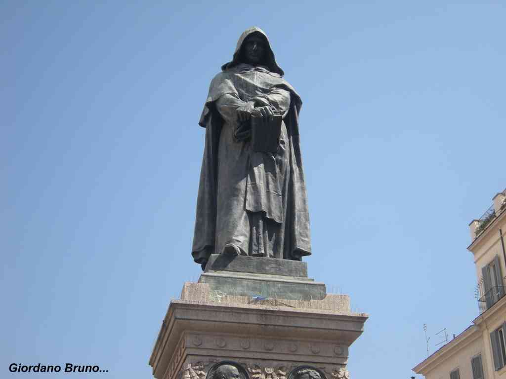 Biraz sonra ulaştığımız nokta Pantheon. Pantheon, Antik Roma'nın en iyi korunmuş yapıtı, eski bir pagan tapınağı ama bugün kilise olarak kullanılmakta. Ünlü ressam Rafaello ve daha önce anıtını gördüğümüz İtalya'nın ilk kralı II. Vittorio Emanuele gibi önemli kişilerin mezarları da buradaymış. Eni ve yüksekliği birbirine eşit bu ilginç yapıyı da gezdikten sonra Campo Dei Fıori Meydanı'nda Giordano Bruno'nun heykeliyle karşılaşıyoruz. Aristotelesçi dünya algılayışından ilk kopan filozoflardan biri olan Bruno, Kopernik'in tezlerini savunarak, evrenin sonsuz olduğunu ve evrende dünyadan başka birçok gezegenin bulunduğunu söylemiş böylelikle de kilisenin tezlerine ters düşmüş. Sonunda Bruno, kilisenin hakkında verdiği ölüm kararıyla, 1600 yılında bu meydanda diri diri yakılmış.