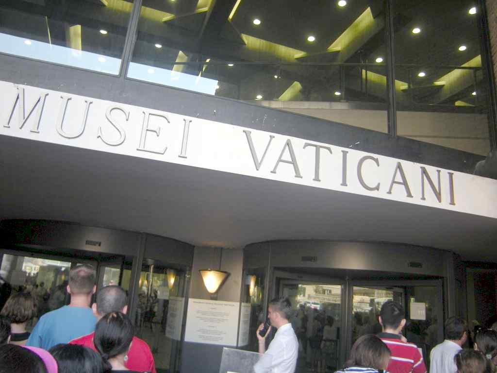 Müzenin önüne varmamıza daha çok varken karşımıza bir kuyruk çıkıyor ki sormayın. Bu kuyruğu görünce, biletleri önceden almayı akıl edebildiğimiz için kendimizi takdir ediyoruz. Biletimiz olmasaymış bu sıcakta bu kuyruğu beklemeye razı olma ihtimalimiz imkânsıza yakınmış. Efendim şimdi kuyrukta beklemeden elinizdeki bilet çıktısı ile içeriye kolayca girmenin de bir bedeli var elbette. Normalde 15 € olan biletin internet fiyatı 19 €. Bu arada Vatikan girişinde kılık kıyafet kontrolü olduğunu unutmayın. İtalya'da, Vatikan dışında da kilise ve ibadet yerlerinin çoğunun girişinde kıyafet kontrolü var. Askılı tişört, şort vb. kıyafetlerle gelmişseniz ya sizden şal vs. ile örtünmenizi istiyorlar ya da kilise girişinde ameliyathane önlüklerine benzeyen örtüler dağıtıyorlar. Vatikan'ın girişinde örtü dağıtma diye bir olay yok, aman yanlış anlaşılmasın, siz tedbirli gidin.