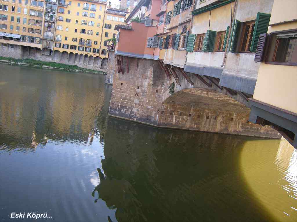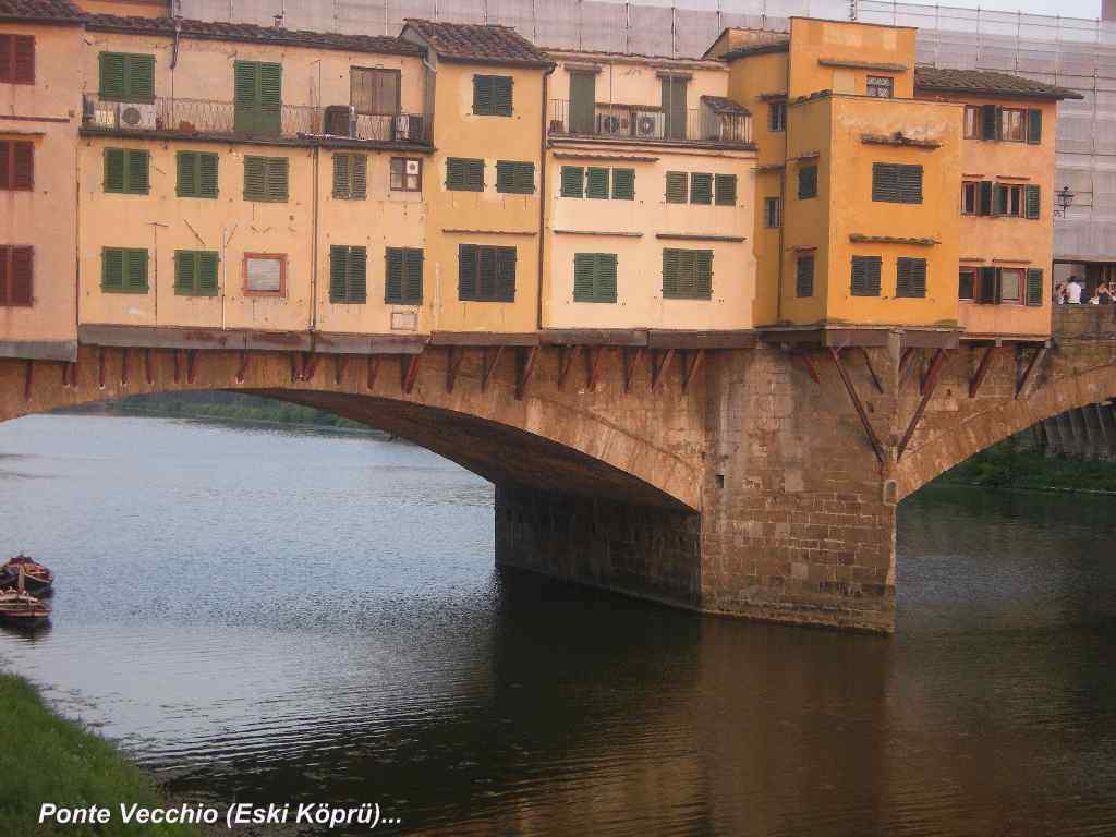 Floransa'ya ilk bakışta dahi, sanatın kentin içine ne denli işlediğini anlayabiliyorsunuz. Üzerinde kuyumcuların bulunduğu Ponte Vecchio'da (Eski Köprü) ilerlemeye başlıyoruz. Bu köprü 1345'de yapıldıktan sonra yüzyıllarca Floransa'nın tek köprüsü olmuş. Köprünün üzerinde yer aldığı Arno Nehri ilk bakışta pek de romantik görünmüyor gözümüze, ama akşamüstü güneşin batma kızıllığında fikrimiz değişecek. Mağazaların üzerinde bulunan koridor Pitti Sarayı ile Uffizi'yi birbirine bağlıyormuş. Kent yöneticilerinin herhangi bir saldırıya uğramadan Pitti Sarayı'ndan Uffizi Müzesi'ne geçebilmesi için dükkânların üst katında bir koridor tasarlanmış. Önceleri bu dükkânlarda kasaplar bulunurken Dük, kasapların etrafa yaydığı kokudan memnun kalmamış ve böylece kasapların yerini kuyumcular almış. Kuyumcuların hikâyesi böyle. Köprünün tam ortasında da ünlü kuyumcu Benvenuto Cellini'nin bronz heykeli var.