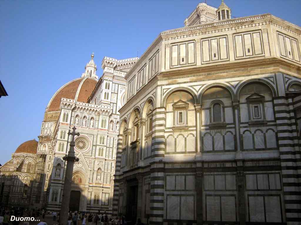 Yol bizi Piazza del Duomo'ya kadar götürüyor. Şehrin tarihi merkezindeki Katedral oldukça ihtişamlı. Santa Maria del Fiore Katedrali 1296 yılında inşa edilmiş. Hemen yanında ise ince eve uzun Çan Kulesi (il Campanile) bulunmakta. İsterseniz Kulenin tepesine çıkıp kente yukardan bakmamız mümkün ama giriş ücretli. Yanılmıyorsam 6 €.