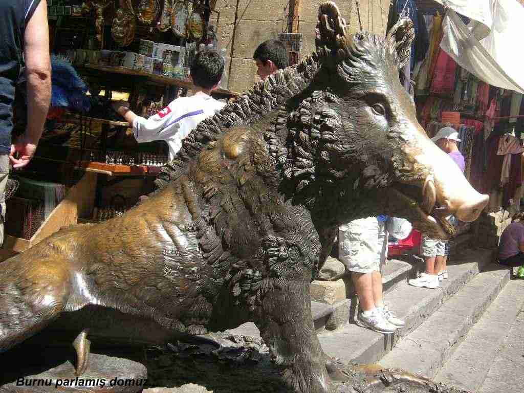 Floransa'dan hediyelik eşya, deri çanta vb. ürünler almak istiyorsanız en iyi seçenek Mercato Nuovo (Yeni Pazar). Pazar alanı alışveriş tezgâhlarının yanı sıra önündeki domuz heykeli ile de ünlü. Bu heykelin burnunu okşarsanız tekrar Floransa'ya geleceğinize inanılıyor. Zaten heykelin burnu da okşanmaktan parlamış. Bir de domuzun ağzına bozuk para koymaya çalışan turistler vardı ki, hikâyenin o kısmını çözemedim.