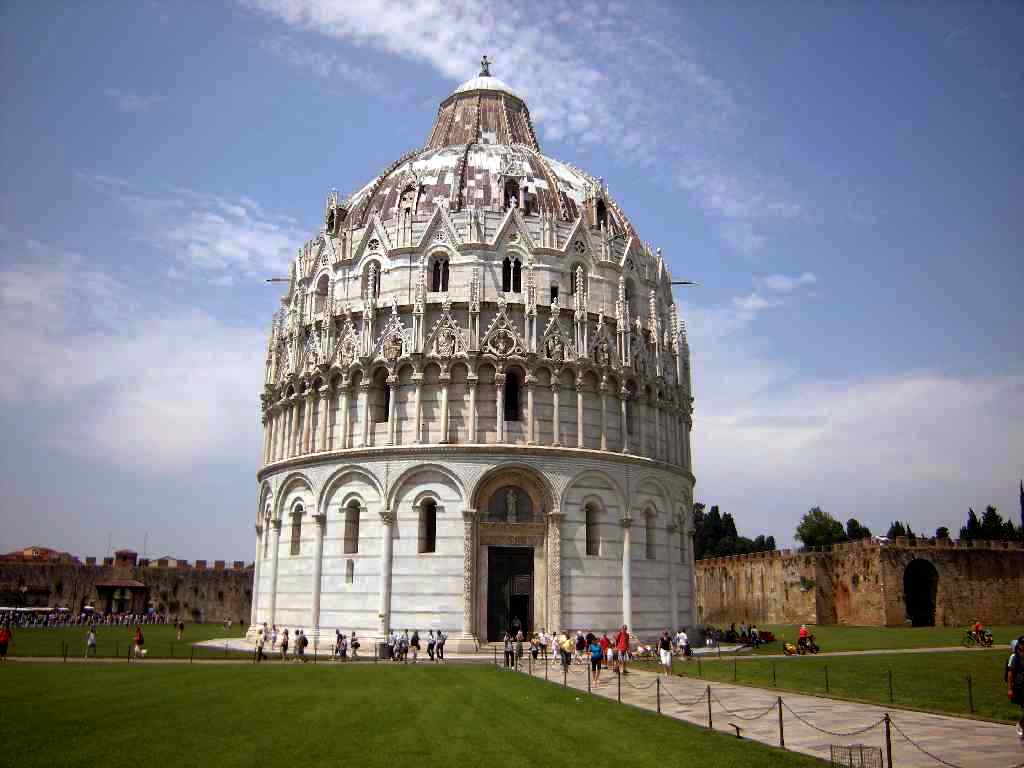 Bir saat gibi bir sürede Pisa'dayız. Tren istasyonu ile kule arasındaki mesafeyi yürümeye karar veriyoruz ki, şehrin geri kalan kısımlarını da görelim. İlerleyince anlaşılıyor ki, Pisa diğer İtalyan şehirleri kadar çekici değil. Bizde kuleyi gördükten hemen sonra şehirden ayrılmaya karar veriyoruz. Bir nehrin üzerinden geçip biraz daha yürüyünce kule uzaktan görünüyor. Sürekli fotoğraflarını gördüğümüz eğik kulenin bu kez kendisini görüp, bilindik pozlarımızı vererek çeşitli fotoğraflar çekiyoruz. Kule sağlam olmayan zemini nedeniyle sekiz katından üçüncüsü yapılmışken eğilmeye başlamış. Zaman geçtikçe de eğimi arttığı için kulenin yıkılacağından korkulmaya başlanmış. 2001 yılında temelden eğimin karşı tarafından toprak çıkarılarak eğim %10 oranında azaltılmış. Eğer isteseniz bilet alarak Pisa Kulesi'ne çıkmanız da mümkün. Ancak her seferinde belli sayıda ziyaretçi kuleye alınıyor ve 8 yaşından küçük çocuklara izin verilmiyor. Aklınızda bulunsun.