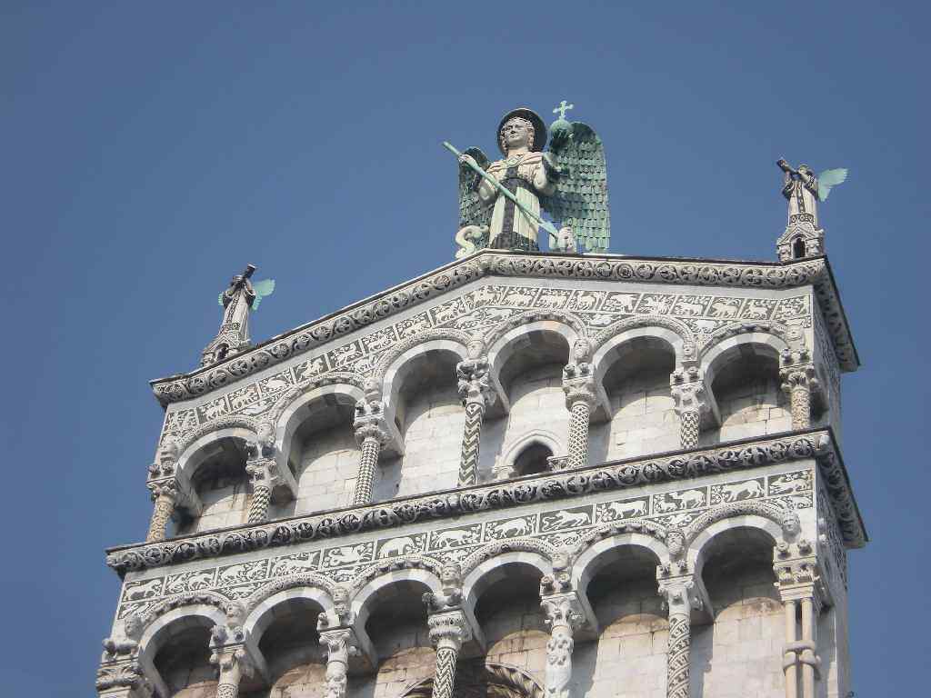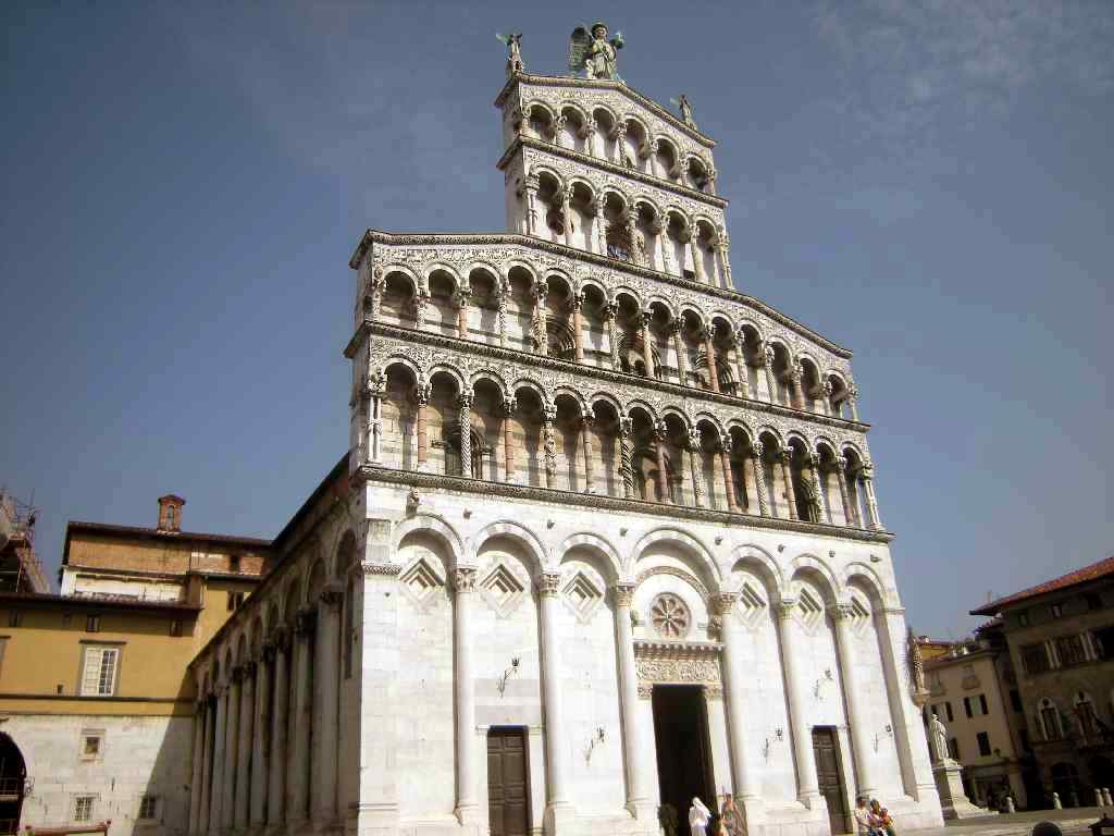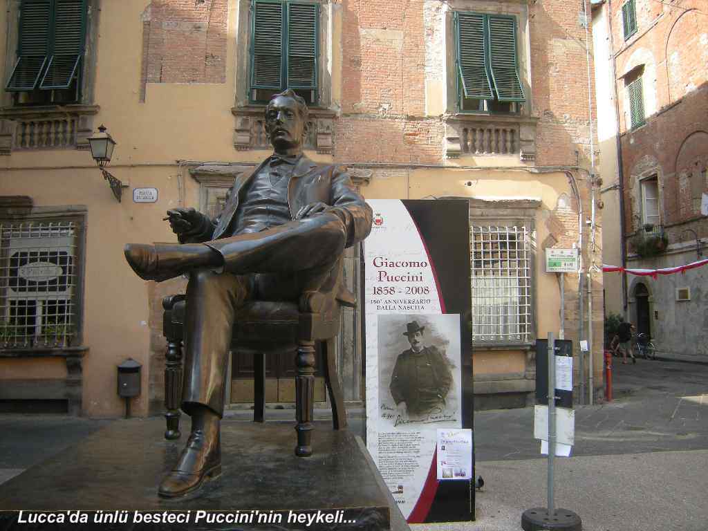 Lucca'da bizi ilk karşılayan hasar görmeden ayakta kalabilmiş surları. Kale duvarlarının yanındaki ağaçlık alanda yürüyerek kent merkezine doğru yol alıyoruz. Pisa ve Lucca arası inanılmaz yeşildi zaten, Lucca'ya iner inmez de bu ağaçlık alanının içinden geçmek oldukça huzur verici. Kentin güzel sokaklarında ilerlerken Duomo San Martino'yu görüyoruz. Biraz ilerleyince de karşımıza Puccini'nin heykeli çıkıyor. Lucca'dan içlerinde Puccini'nin de bulunduğu birçok müzisyen çıkmış.