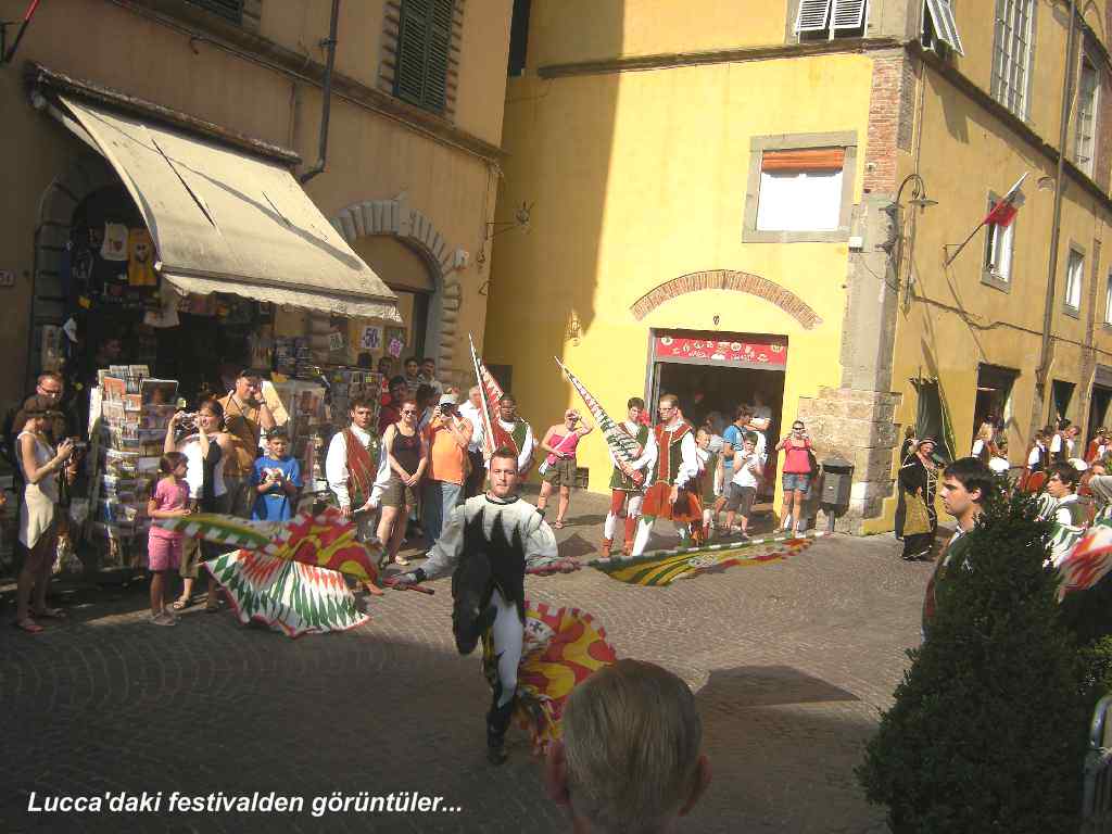 Lucca'da halen çeşitli müzik festivalleri yapılmakta. Bugün şanslı günümüz ki biz de bir etkinliğe denk geliyoruz. Lucca'nın taş sokakları ve tarihi binaları arasında iskambil destesi kıyafetleriyle bir bando ekibi görmek 'Alice Harikalar Diyarında' etkisi yaratıyor. Bu hissi yaratan havayı içimize çekip olabildiğince geç kendimize gelmek istiyoruz.