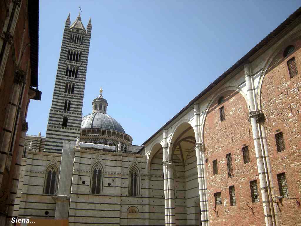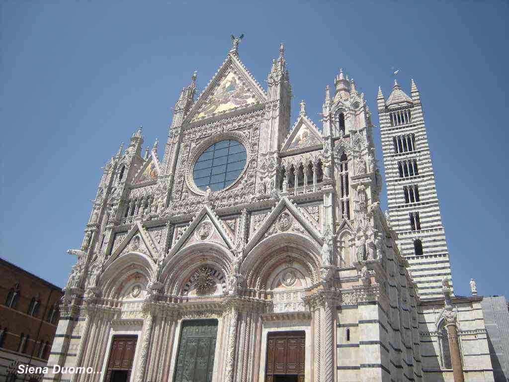 Kentin görülecek yerlerinden bir diğeri olan Siena'nın Duomo'su, İtalya'nın en önemli katedrallerinden biri. Siyah-beyaz çizgili mermer bu yapı seyahatimiz boyunca gördüğümüz en etkileyici yapılardan biri. Bunlar dışında bu kentte tüm sokaklar birbirinden güzel. Kısacası, yolunuz İtalya'ya düşerse Siena'yı mutlaka görün. Kentin tarihi merkezine attığınız ilk adımdan itibaren, ibresi Ortaçağı gösteren bir zaman makinesiyle seyahat ettiğinizi hissedeceksiniz.