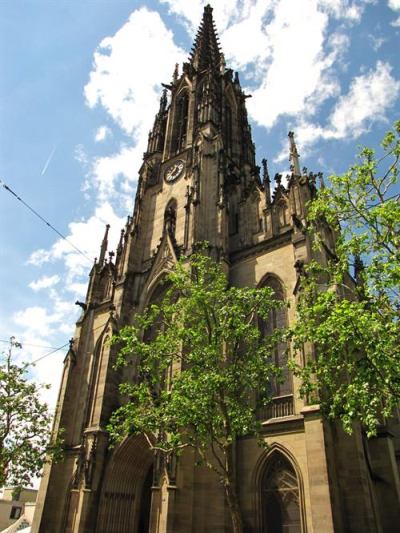 Theater platz da ilginç bir havuz var, modern heykellerle süslü. Burada biraz gerginliğimizi gideriyoruz, çalışanlar sandviçleri ile havuz kenarında öğle molası yapıyorlar, oradan Leonhard kilisesinin gotik cephelerini seyrederek Barfüsser platz'ın karmaşasına geliyoruz