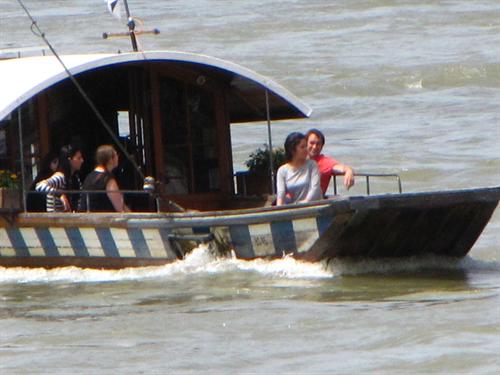 Şehrin iki yakası arasında, eskiden bizim Haliçte de çalışan minik motorlar çalışıyor, ama bunlar Ren in kuvvetli akıntısında savrulup gitmesinler diye tepedeki bir tele bağlı olarak gidip geliyorlar, yani bir nevi tele-kayık.