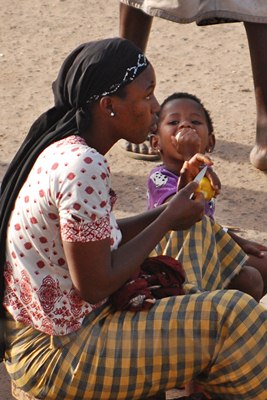 Çocuklar ise, gençlerin ezber soru-cevaplarının özeti sayılabilecek bir muhabbetin ardından birşeyler istiyorlar. Genellikle de "Ben açım"la başlayan bir vicdanî baskıyla. Çoğu Afrika ülkelerinde olduğu gibi, burada da çocuklarda beyaz adamla paranın eşdeğer olduğuna ilişkin bir algı var. Bu algının oluşmasına sebep onlar değil, elbet. Bir şekilde ve kıvılcımla başlayan bu 'âdet', kendini Afrikalılar'a karşı vicdan borçlusu hisseden 'beyaz adam'ın bu borcunu parayla ödeme içgüdüsüyle gelişip, serpiliyor. Sonuçta, beyaz adam görünce avuçlarını açıp "Gi mi!" (İngilizce "Give me!"nin uyarlanmışı) diye etrafına doluşan çocuklar ordusu çıkıyor ortaya.