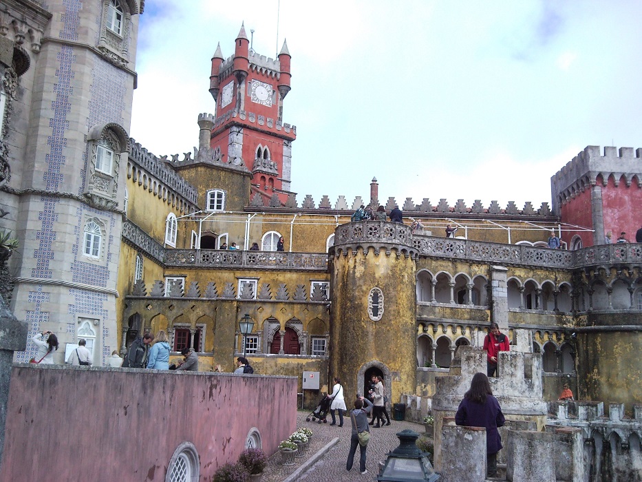 Pena'ya giriş için 13,5 € ödedik; farklı farklı giriş ücretleri var. Sadece saray, sadece bahçe ya da hepsi gibi. Pena hakikaten bir masal sarayı gibi rengârenk bir yapı ve her şey minyatür. Burada zamanında yaşayanların cüce olduğunu düşünüyor insan. Lizbon'da gezerken de bu duyguya kapıldığımız evler oldu. Apartmanların camları küçücük, iki kat arası küçücük. Çok kısa oldukları kesin. Penanın yatağını görünce iyice emin oluyorsunuz zaten. Penayı gezmek yaklaşık 2 saatten fazla sürdü. Artık herkes hem yoruldu hem de acıktı. Daha önce Philip'in tavsiye ettiği lokantaya gidip yemek yemeye karar verdik. Tabii bu sefer tuk tuk la çıktığımız yerleri yürüyerek indik.
