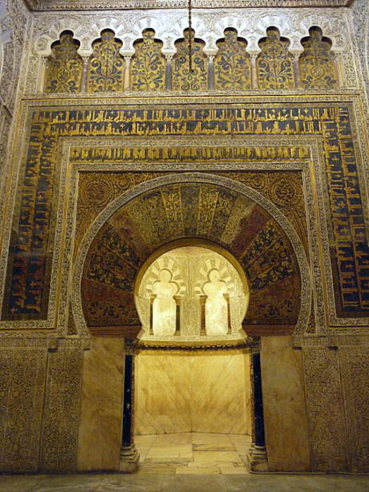 Kurtuba Ulu Camii Bizans mozayikleri ile süslü mihrap ve mihrap yen kemerlerinin detayı...