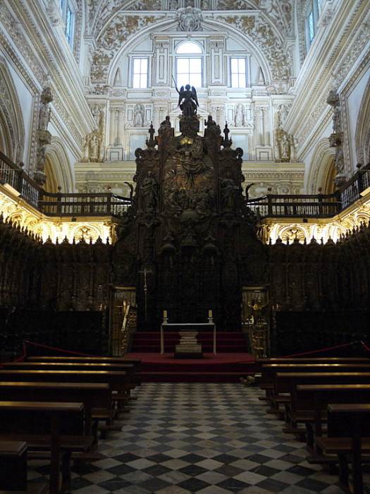 Solda La Mesquita içindeki Santa Teresa Şapeli sağda ise Cordaba'nın 1236'daki fethini anlatan kompozisyon; Kastilya Kralı 3.Fernando, bütün azameti ile ve önünde diz çöküp, biat eden Endülüs Beyleri...