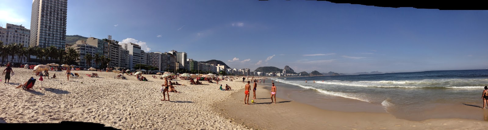 Otelimiz ünlü Copacabana plajının kıyısında. Plajla aramızda sadece Av. Atlantica var. Her zaman yaptığımız gibi eşyalarımızı odamıza bıraktıktan sonra, Copacabana'da aldık soluğu. Copacabana plajı, Rio denince akla gelen birkaç yerden biri. Bulmaca meraklıları bilir. Bulmacalarda ,
