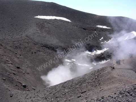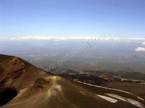 Meşhur Etna'ya tek başımıza çıkamayacağımızı düşünerek tur aldık. Otobüs sabahın köründe Cefalu'dan hareket etti. 11 civarında Etna'nın eteklerinde 1000 m seviyede büfelerin ve park yerlerinin olduğu yere ulaşıldı. İsteyenler, bizde dahil olmak üzere, extra ücret ödeyerek yukarıya çıkmaya hazırlandık. Üşümemek için 5 €'ya anorak kiralamak gerekli çünkü yukarısı buz gibi soğuk ve yürüyüş için mutlaka uygun ayakkabı giyilmeli. Bu malzemeleri ayakkabı dahil yukarıda kiralamak da mümkün. 20 kişilik guruplar halinde teleferik ile belli bir noktaya ulaştıkdan sonra Unimog (Özel Arazi kamyonu) lar ile zirveye çıktık. Daha sonra yarım saat sürecek bir yürüyüş ile en yakın kraterlere ulaştık ve gaz çıkışlarını izledik. Kapkara bir lav tabakası üzerinden 3000 m yükseklikten tüm Sirakuza körfezini izlemek mümkün oldu. Öğleden sonra ise Taormina'nın güneşi ile ısındık, güzellikleri ile keyiflendik. Tur satın almamız iyi oldu çünkü Etna'ya çıkış bireysel olarak zor olabilirdi.